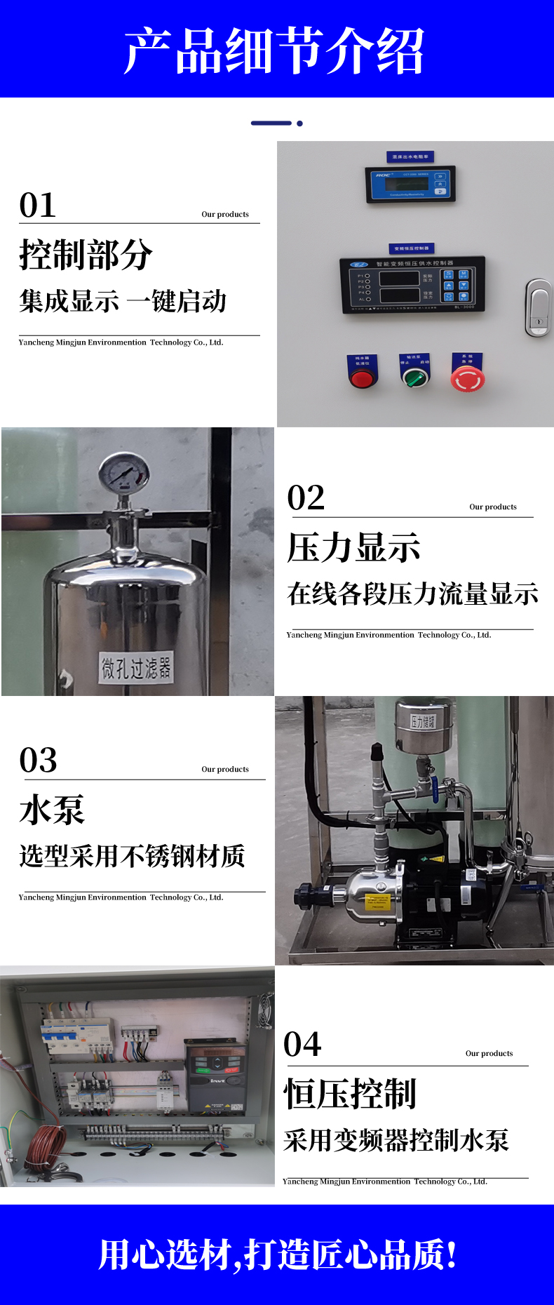 名俊源超純水終端拋光混床送水設(shè)備有利于控制出水水質(zhì)穩(wěn)定性,再用0.22微米的微孔過(guò)濾器器,有效攔截拋光混床破損的樹脂顆粒及大部分的細(xì)菌。本套終端拋光混床供水采用變頻恒壓方式供水,有效穩(wěn)定供水壓。歡迎登陸網(wǎng)站查詢更多水處理設(shè)備信息:http://www.jukandian.cn/鹽城名俊環(huán)??萍加邢薰局鳡I(yíng):反滲透純水設(shè)備,純化水